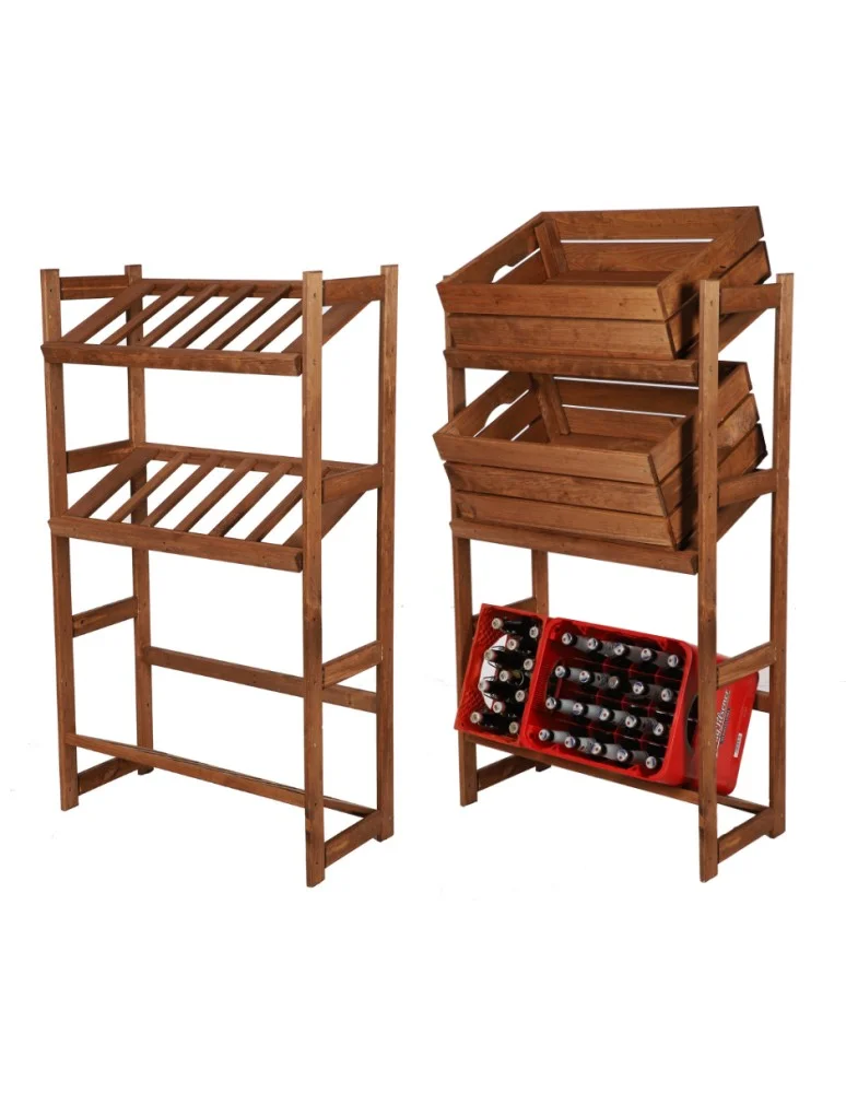 Regał Drewniany LSR – 3 półki na skrzynki – brązowy