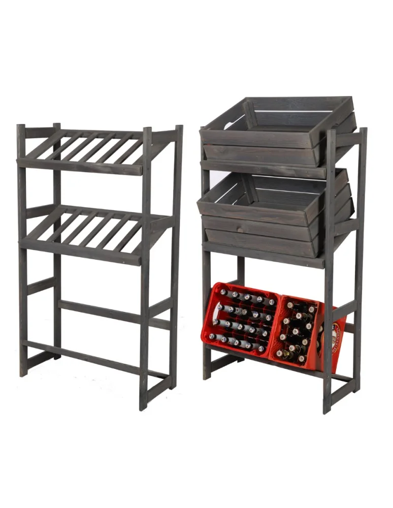 Regał Drewniany LSR – 3 półki na skrzynki – szary