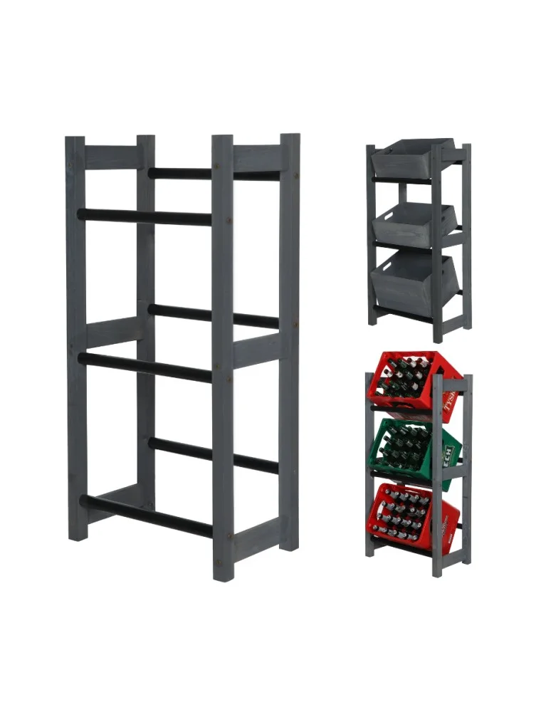 Regał na Skrzynki Transportowe (3szt) – Plastik/ Drewno Szare – RSR_053X32_3_S0K1