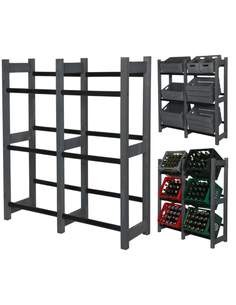 Regał na Skrzynki Transportowe (6szt) – Plastik/Drewno Szare– 108X102X32 cm
