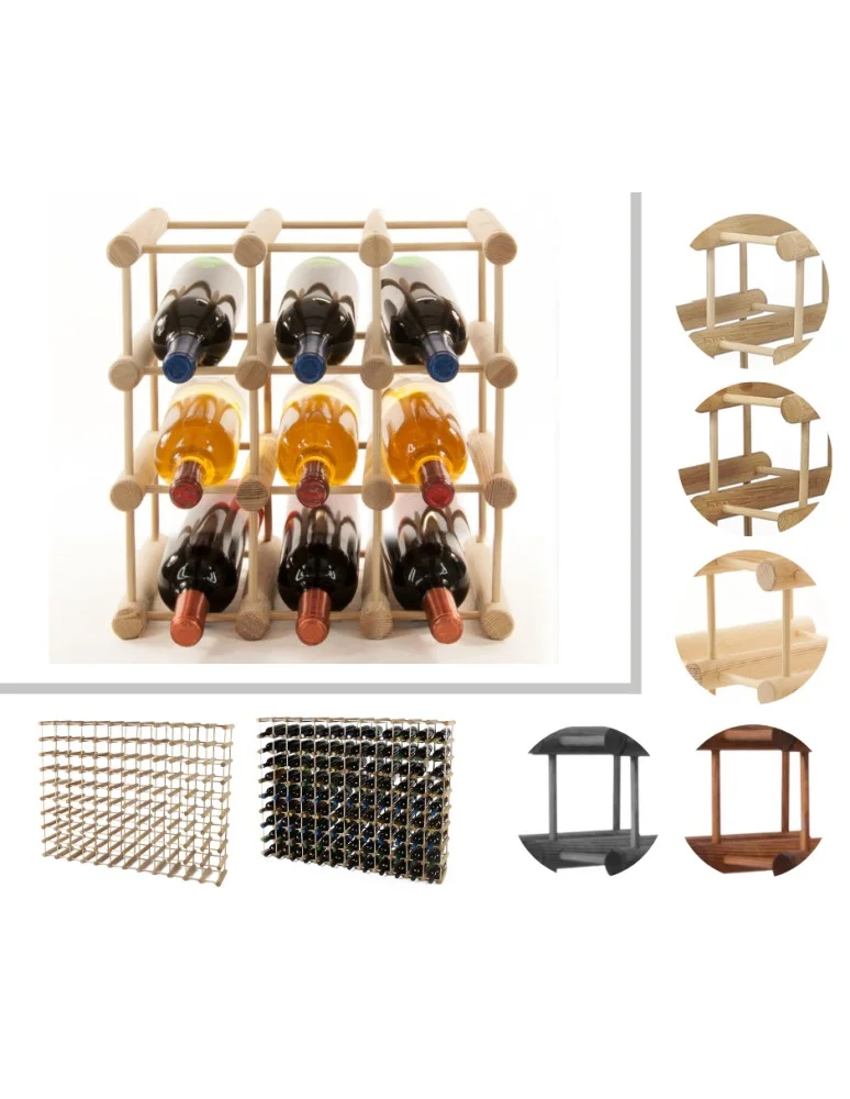 Modułowy stojak na wino /9 butelek — RW7 — Naturalna sosna