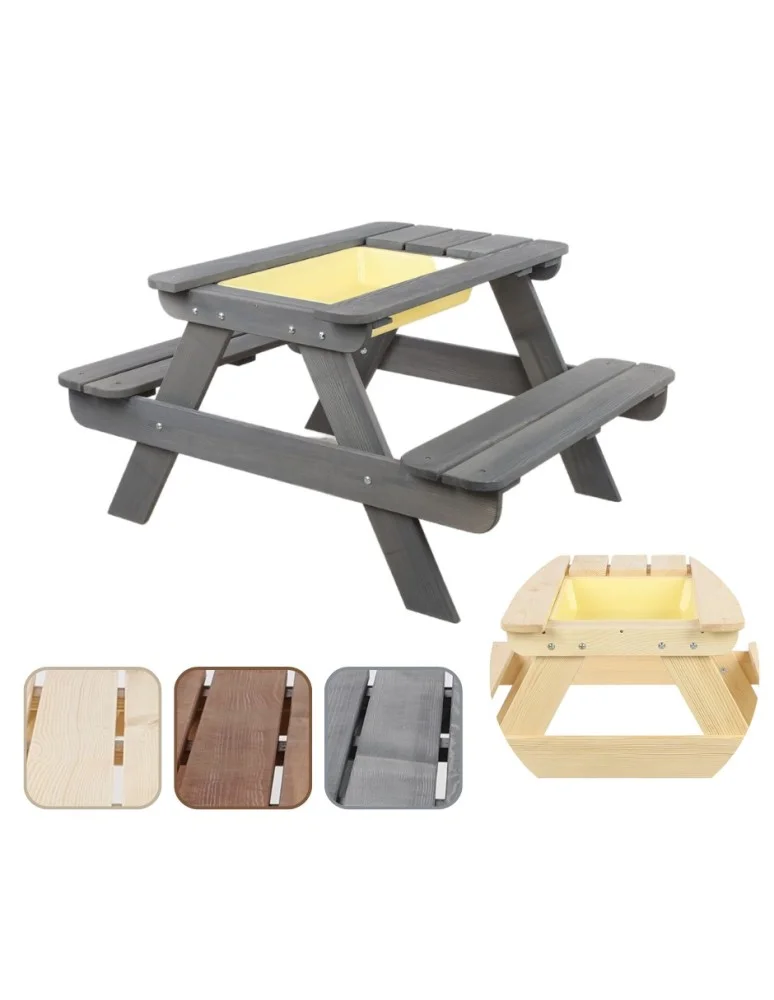Drewniany stół piknikowy z pojemnikiem na piasek stolik dla dzieci z ławką