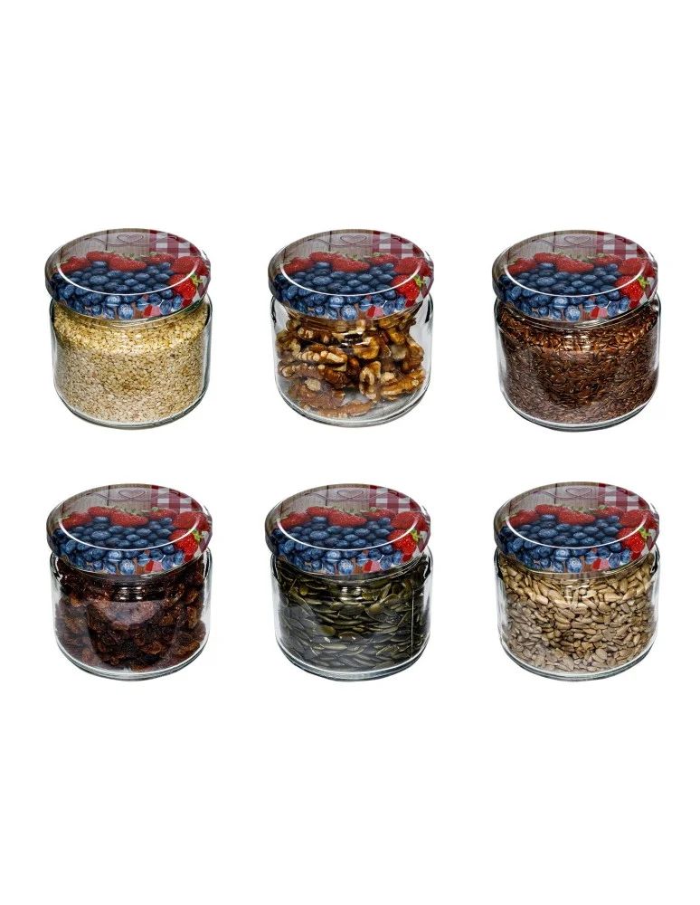 Słoik 330 ml zwykły · Pokrywka (⌀82) z grafiką “alpejską” · 6-pak