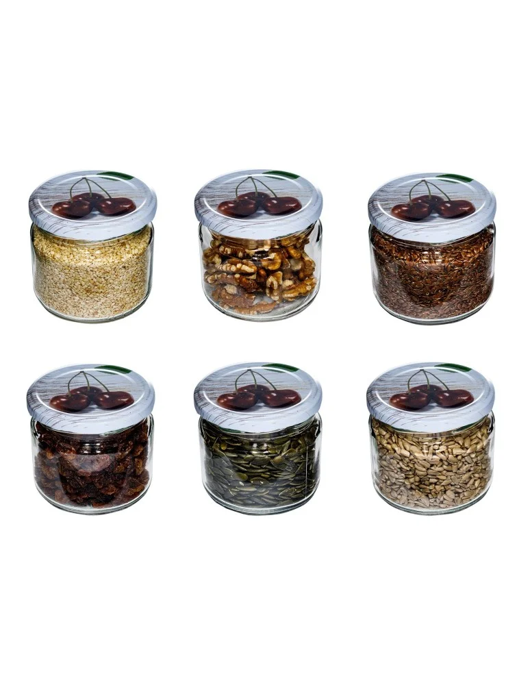 Słoik 330 ml zwykły · Pokrywka (⌀82) z grafiką “czereśnia” · 6-pak