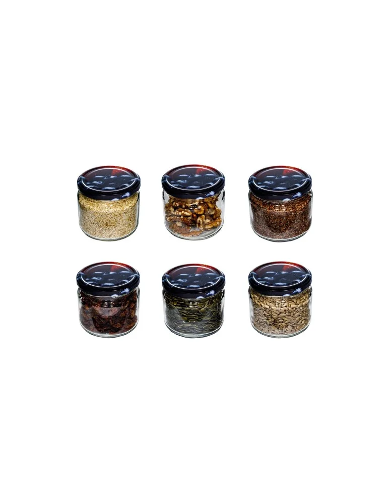 Słoik 330 ml zwykły · Pokrywka (⌀82) z grafiką truskawka-borówka · 6-pak