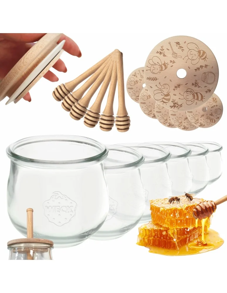 Bezkonkurencyjne słoiki do miodu WECK z pokrywką oraz nabierakiem do miodu (zestaw 6 szt) zaopatrzonymi certyfikatem FSC . Słoiki na lata, z ponad 120-letnią tradycją!