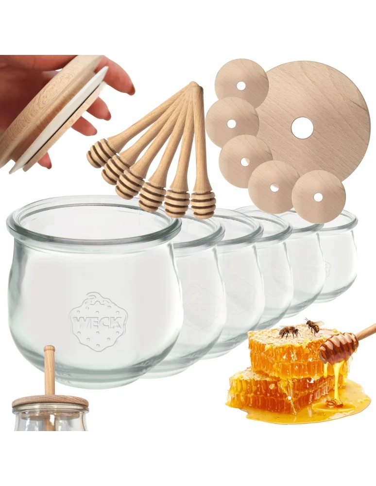 Bezkonkurencyjne słoiki do miodu WECK z pokrywką oraz nabierakiem do miodu (zestaw 6 szt) zaopatrzonymi certyfikatem FSC . Słoiki na lata, z ponad 120-letnią tradycją!