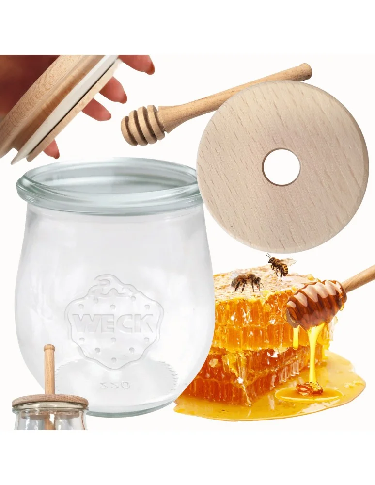 Bezkonkurencyjny słoik do miodu WECK z pokrywką oraz nabierakiem do miodu zaopatrzonymi certyfikatem FSC . Słoiki na lata, z ponad 120-letnią tradycją!