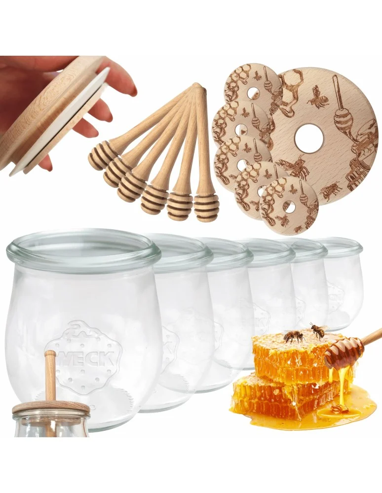 Bezkonkurencyjne słoiki do miodu WECK z pokrywką oraz nabierakiem do miodu (zestaw 6 szt) zaopatrzonymi certyfikatem FSC . Słoiki na lata, z ponad 120-letnią tradycją!