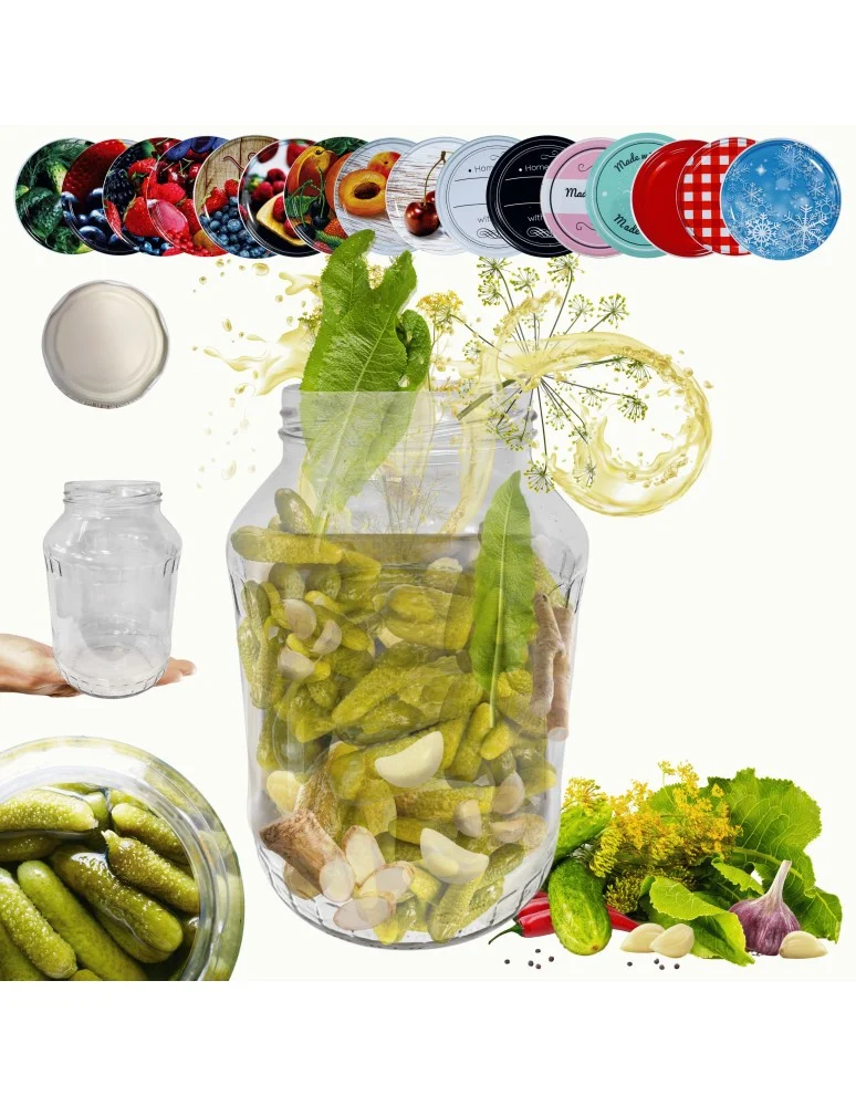 Słoik 1500ml 1,5l na ogórki małosolne soki nalewki KOMPLET z POKRYWKĄ 82mm