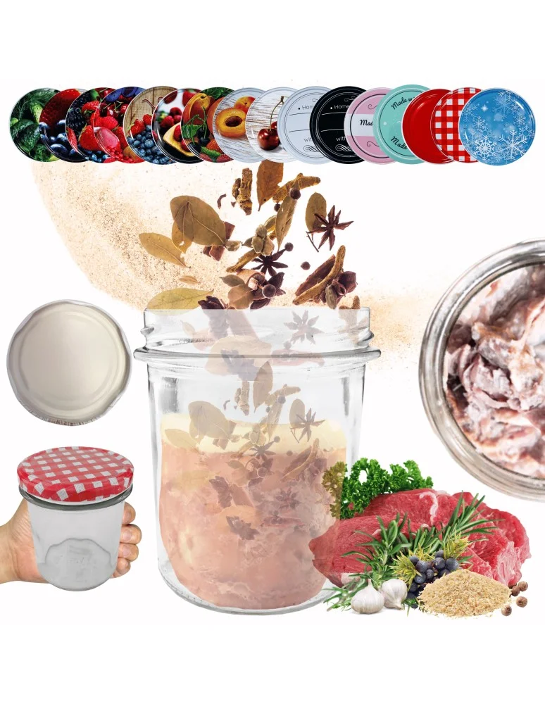 Oferujemy duży wybór wzorów nakrętek, dzięki czemu bez przeszkód dopasujesz wygląd słoika do jego przyszłej zawartości.