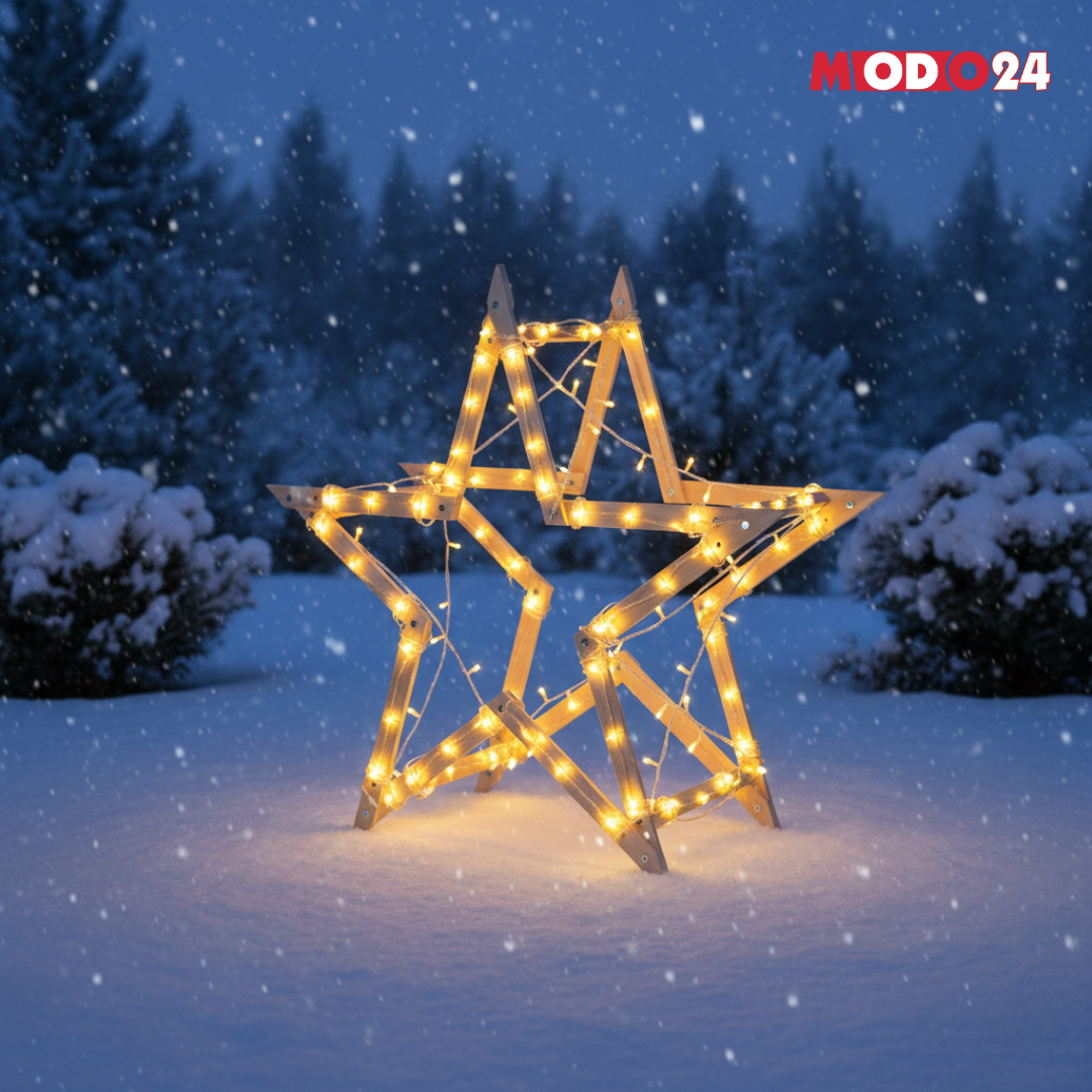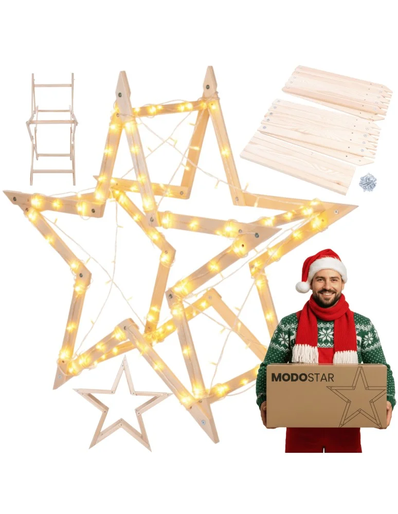 Gwiazda świąteczna 3D kompaktowa składana ModoStar 114 cm drewniana stojąca