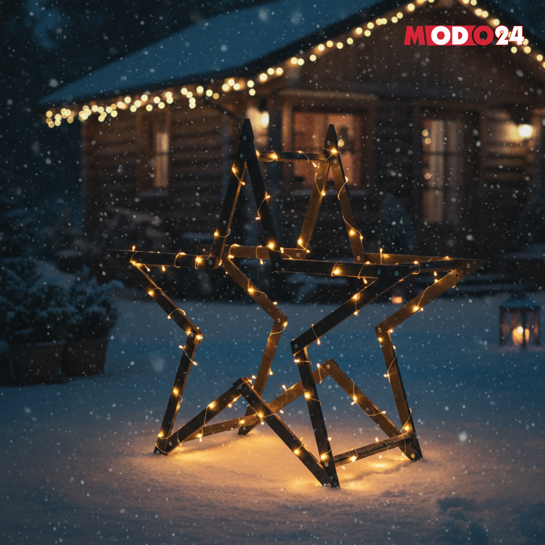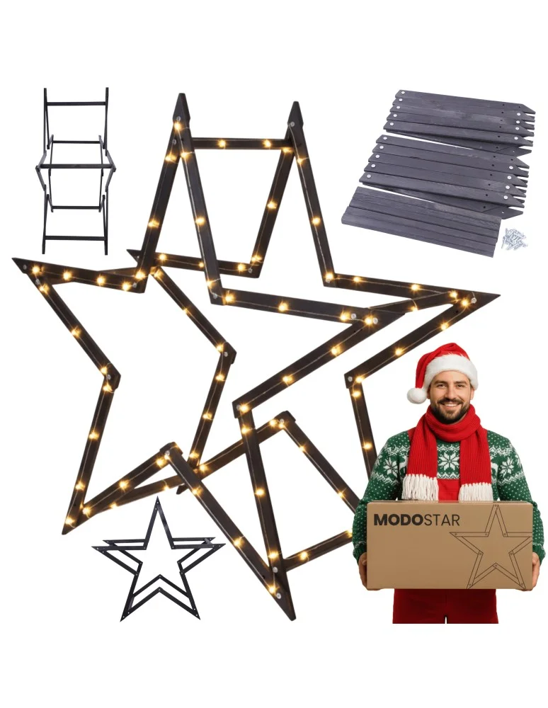 Gwiazda świąteczna 3D składana łatwy montaż ModoStar 139cm drewniana CZARNA