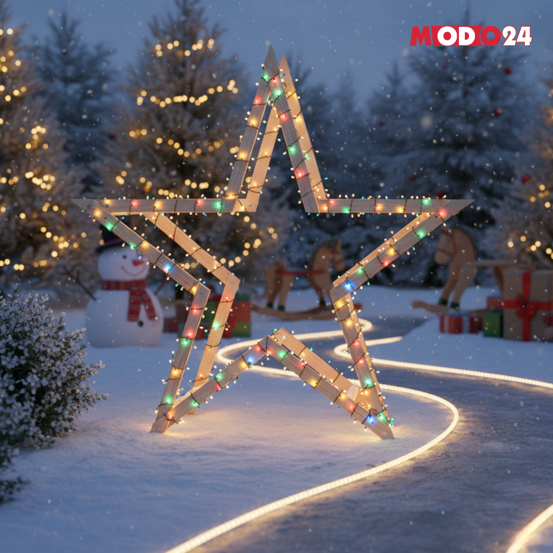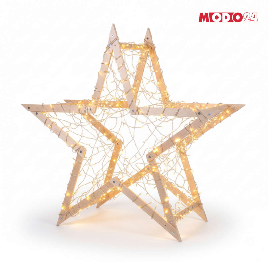 Gwiazda świąteczna 3D kompaktowa składana ModoStar 139cm naturalne drewno