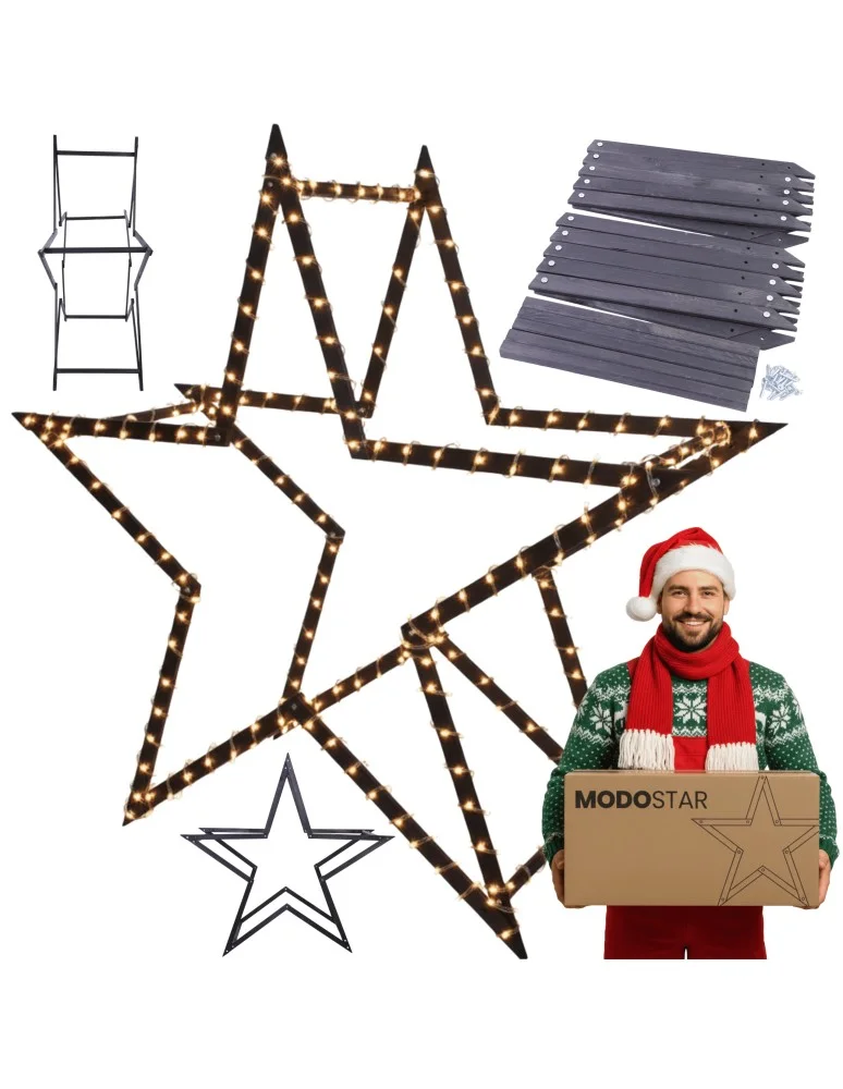 Gwiazda świąteczna 3D składana łatwy montaż ModoStar 189cm drewniana CZARNA