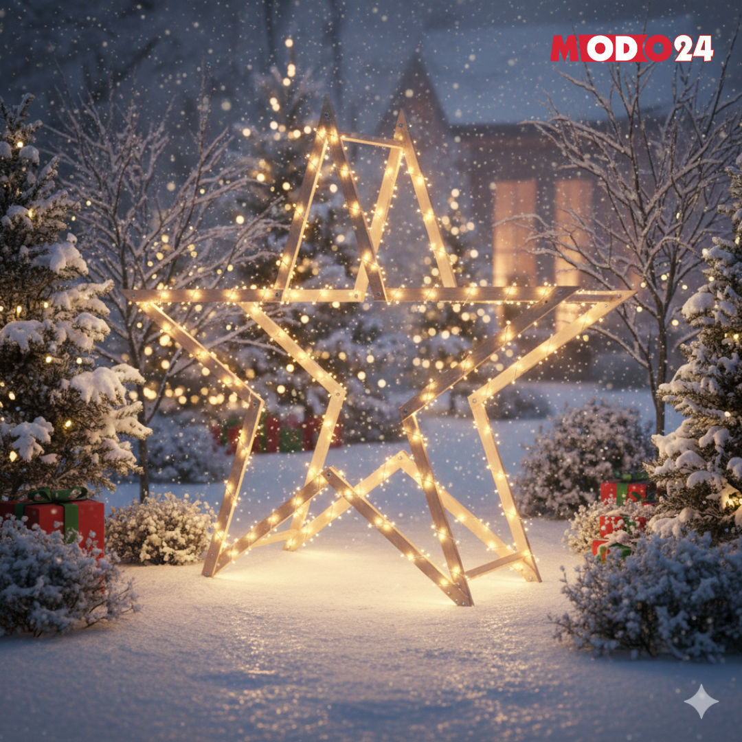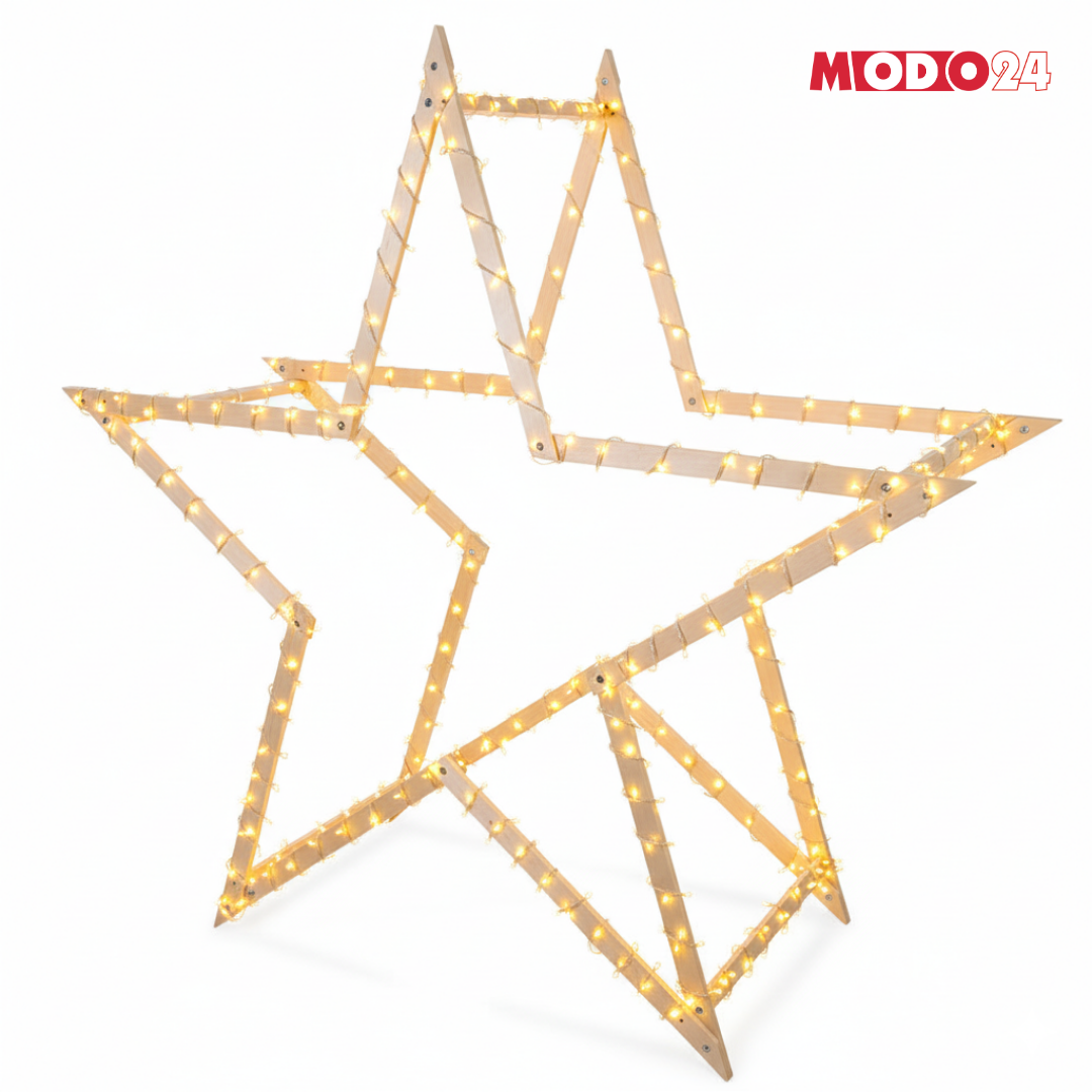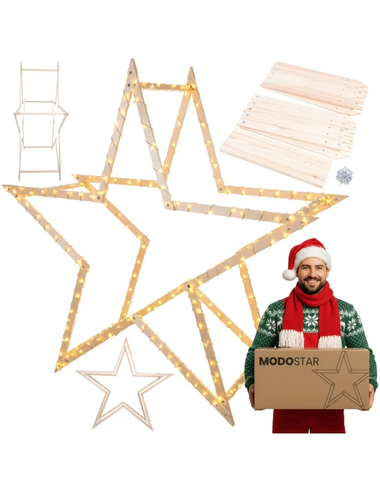 Gwiazda świąteczna 3D kompaktowa składana ModoStar 189 cm naturalna drewno
